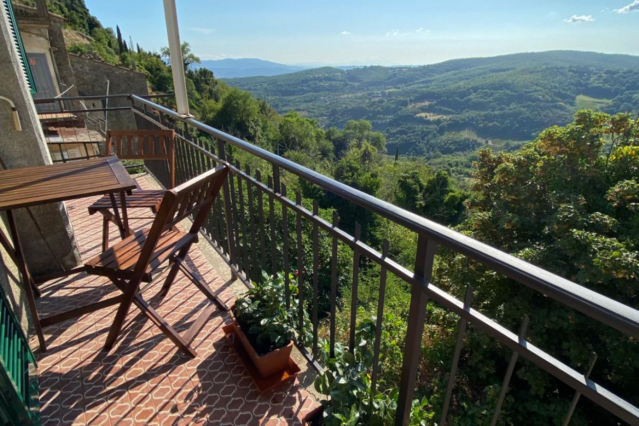 La struttura gode anche di un balcone attrezzato di tavolo e sedie e con una vista panoramica sulle splendide colline dell'Alta Maremma
